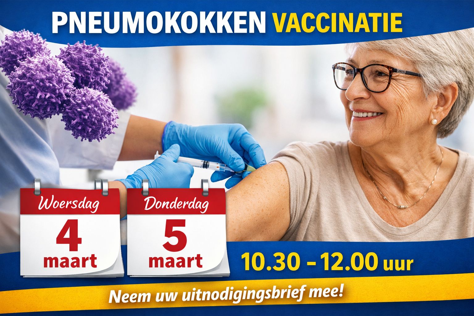 Pneumokokkenvaccin beschikbaar, prikdagen 4 en 5 maart.